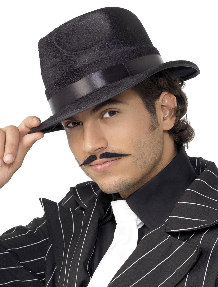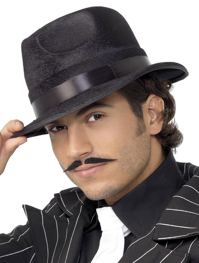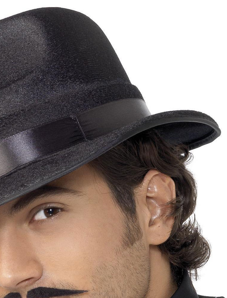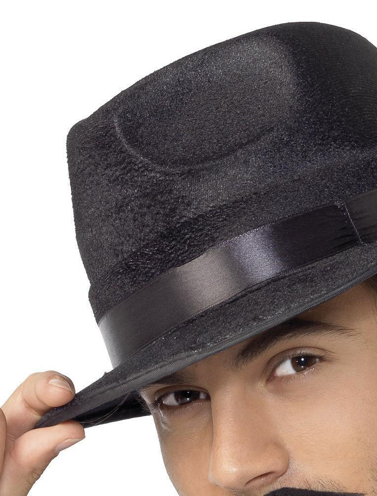 Palarie gangster Indestructible de culoare neagra confectionata din material textil catifelat cartonat.