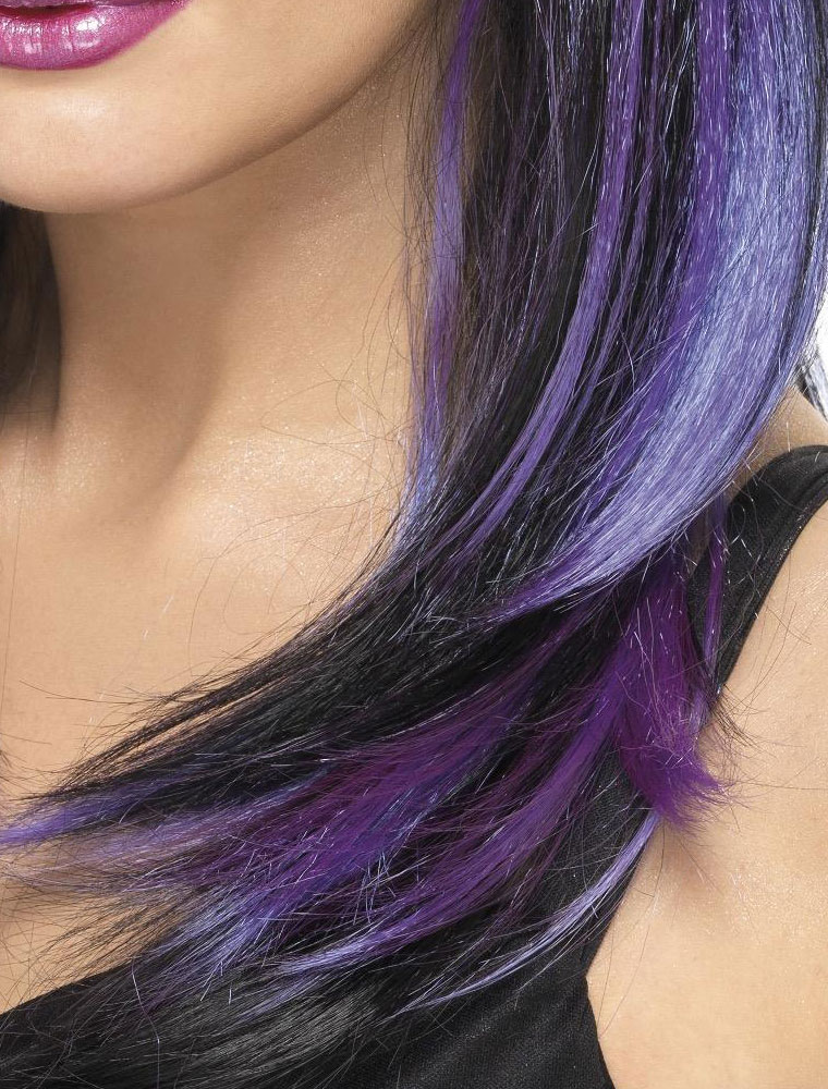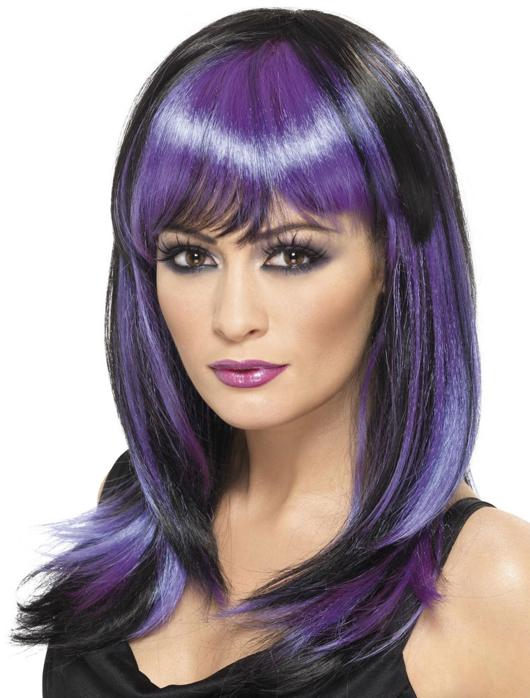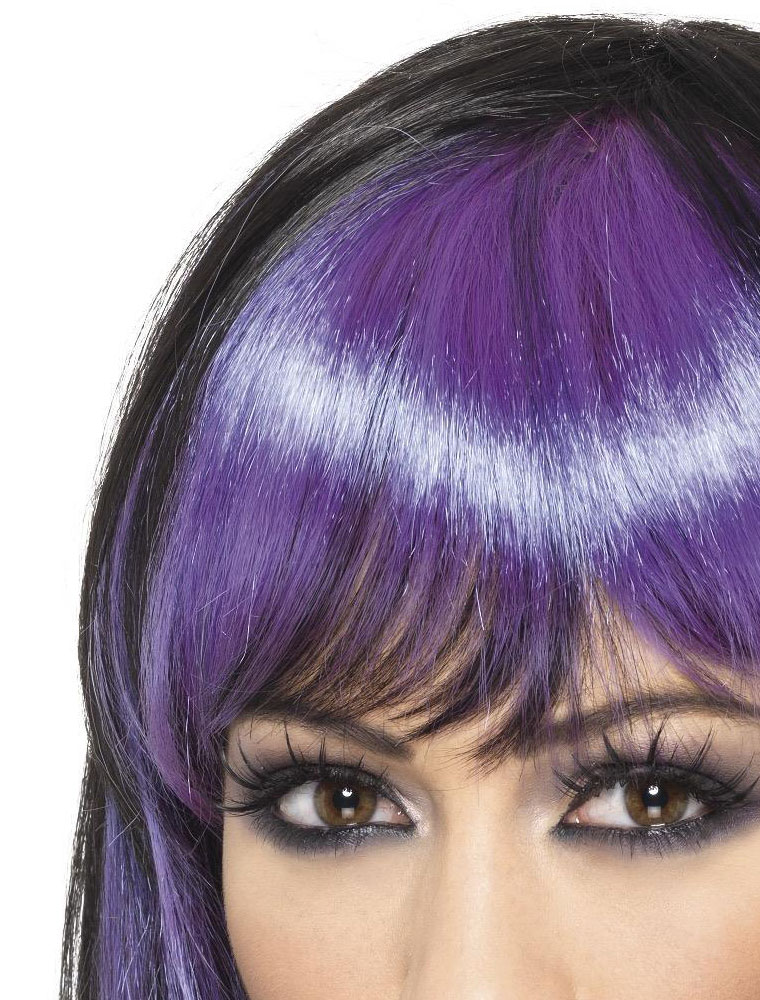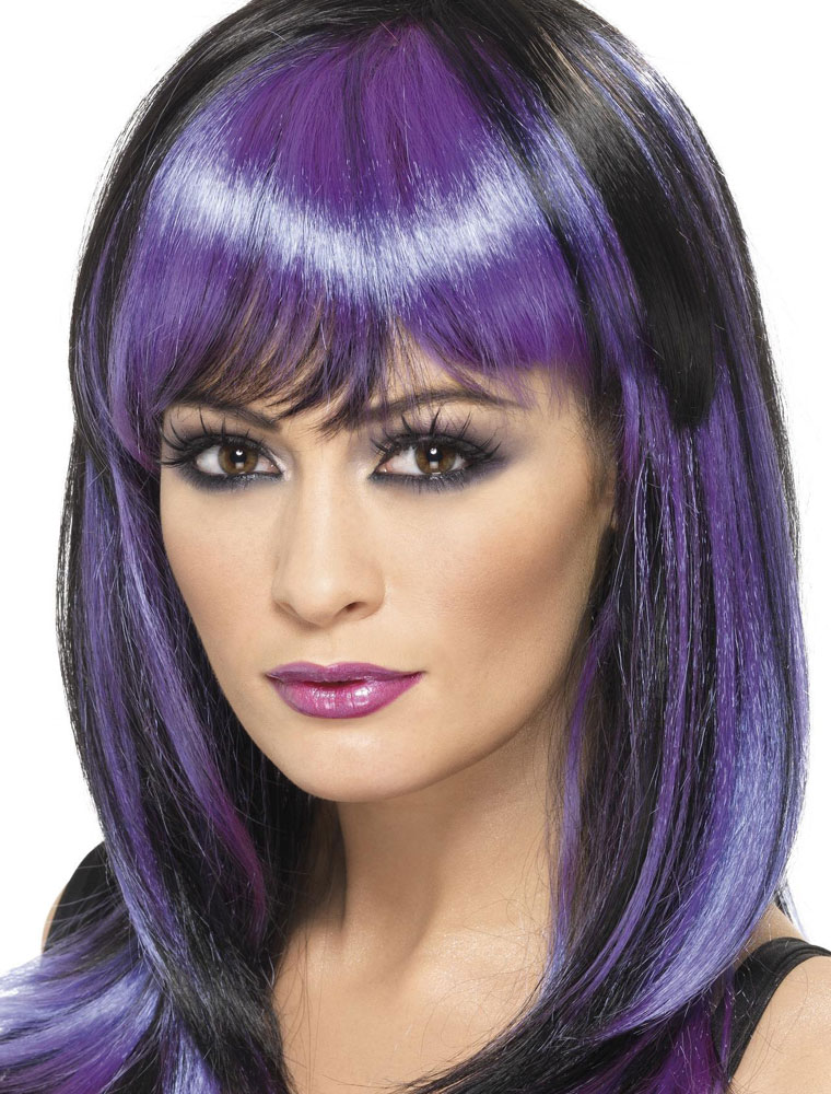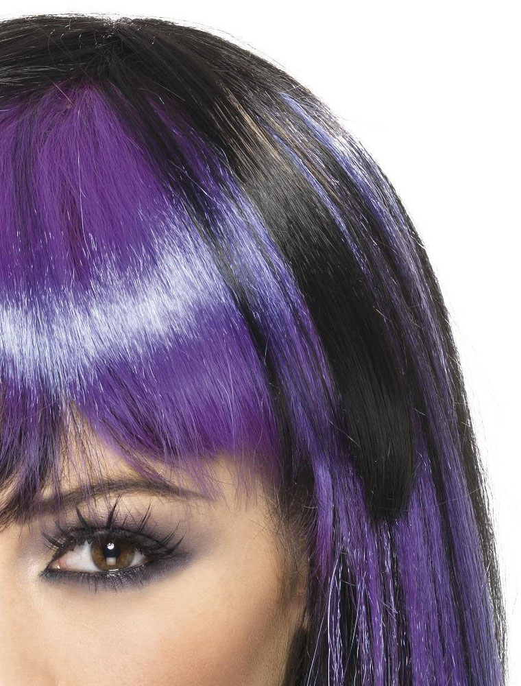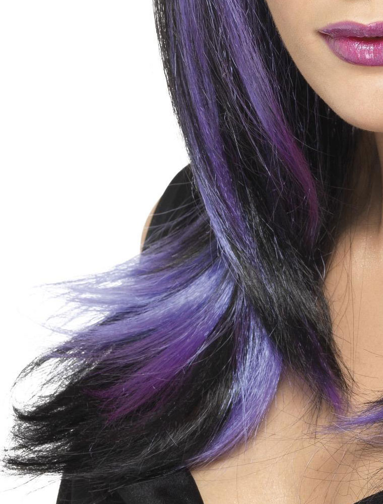 Peruca Glamour Witch neagra cu violet confectionata din par artificial.