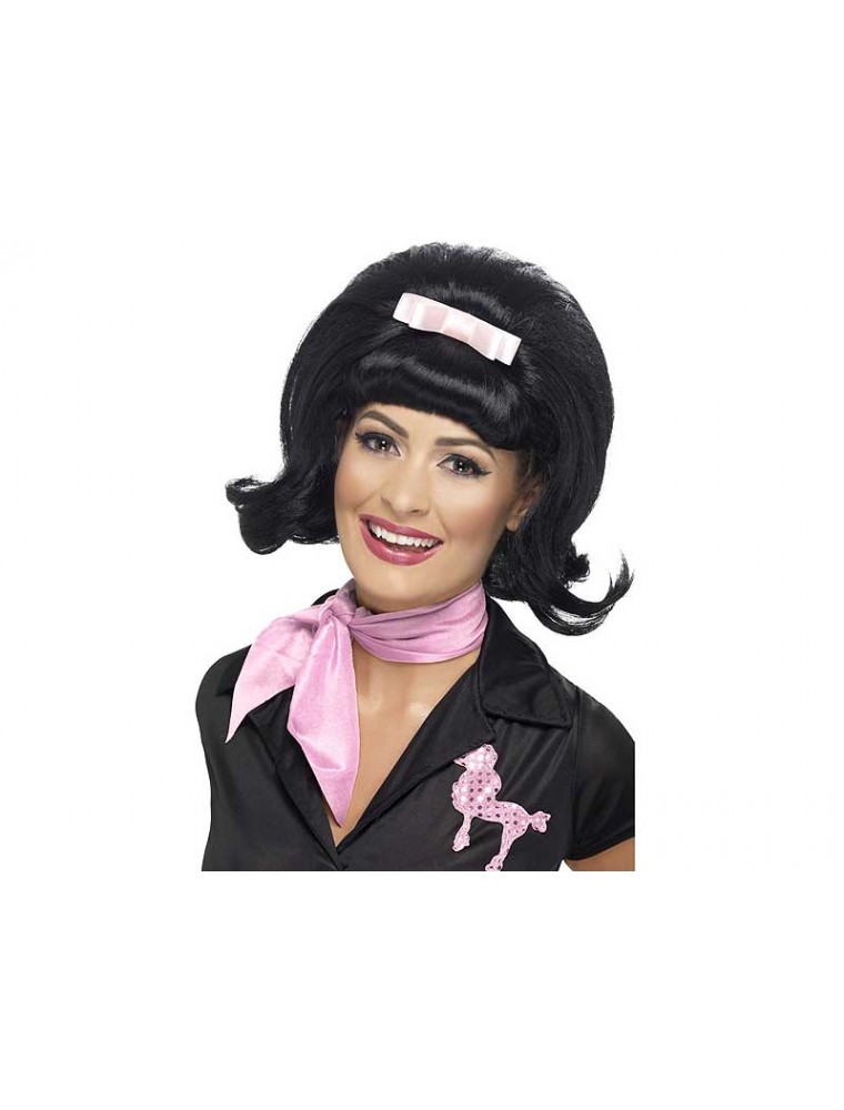 Peruca Flicked Beehive Bob neagra anii '50 - coafura gospodinelor si secretarelor din anii '50.