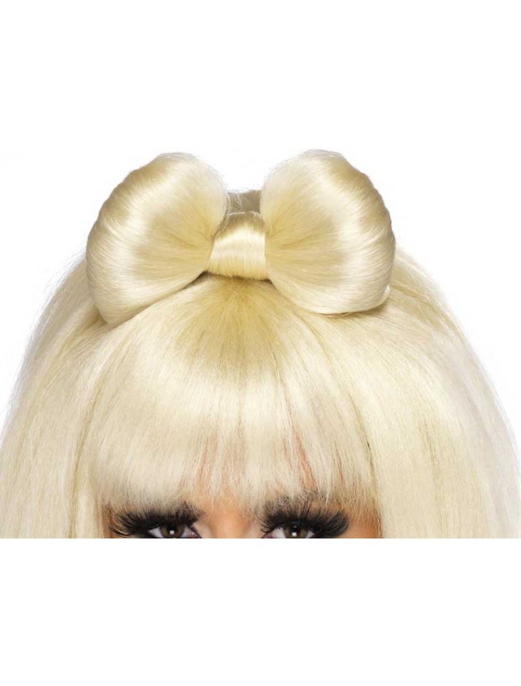 Peruca Lady Gaga blonda cu fundita confectionata din par artificial.