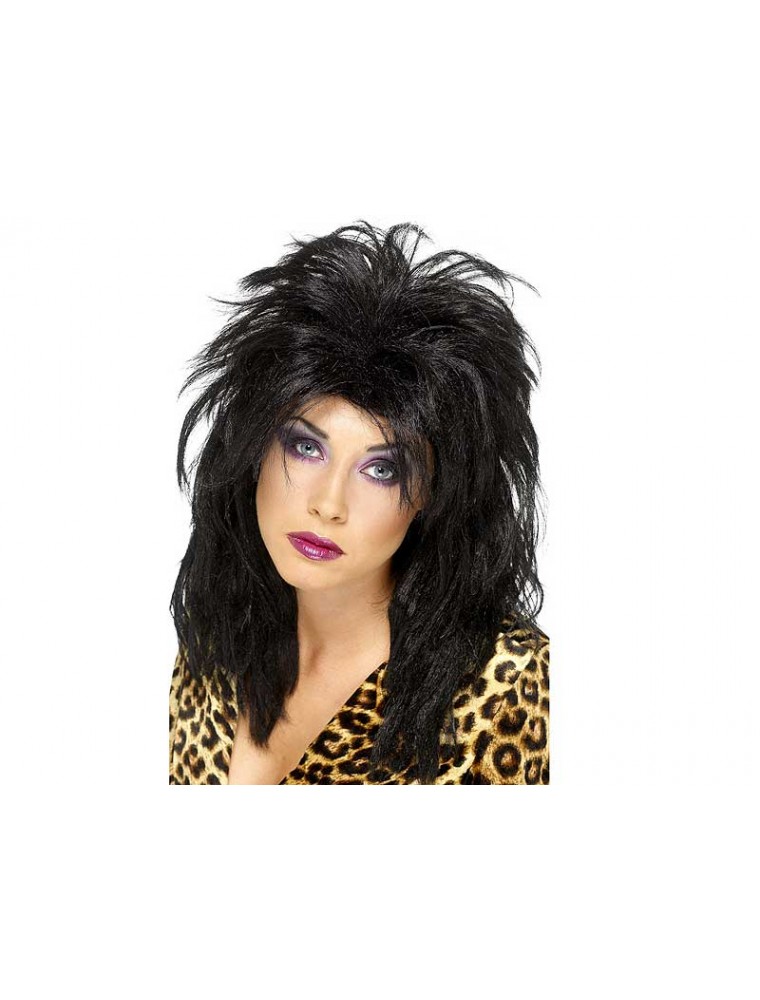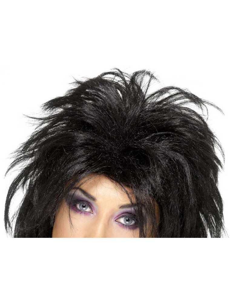 Peruca Popstar neagra anii '80 confectionata din par artificial negru.