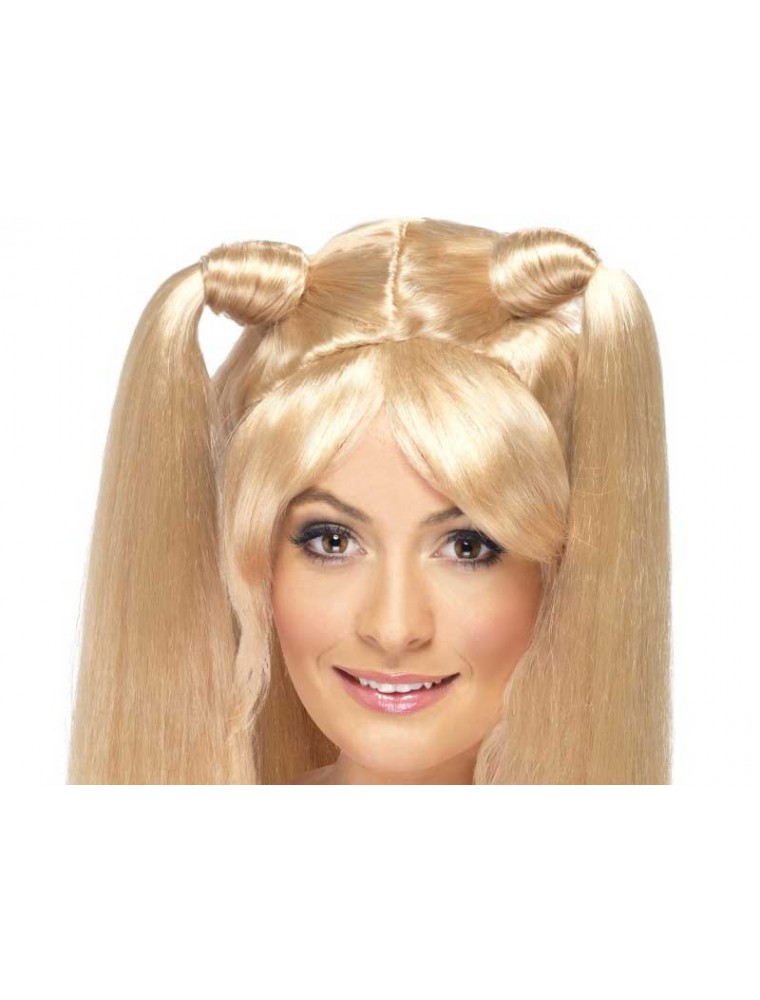 Peruca este confectionata din par artificial, coafat ca in imagine, necesita numai minime retusuri dupa scoaterea din cutie inainte de purtare.