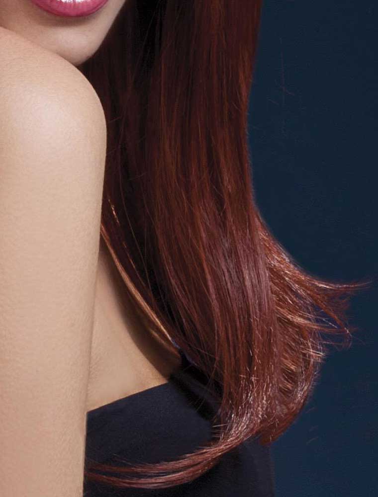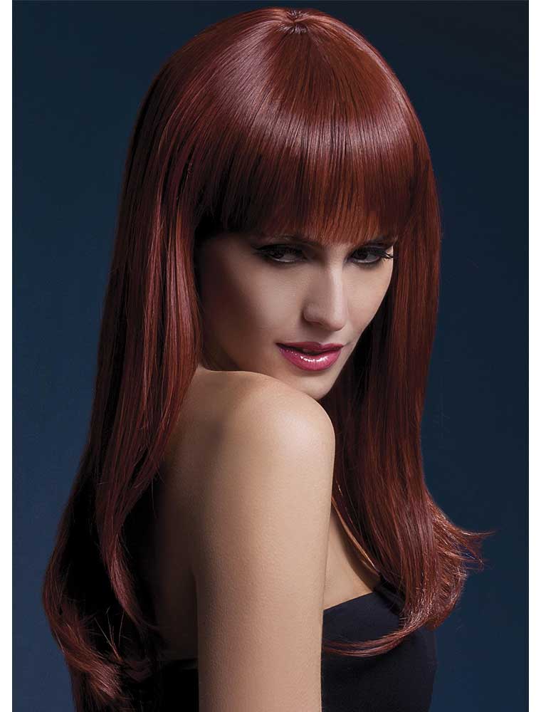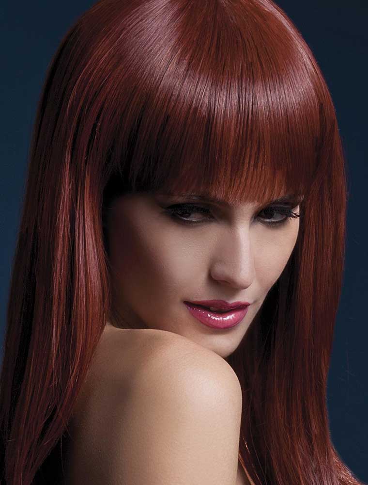 Peruca model Sienna din gama de lux “Fever”, varianta castaniu-roscata, cu par lung si breton. Este confectionata din par sintetic identic cu cel natural cu aspect 100% normal si cu un excelent raport pret/calitate, vedeti mai jos detalii.