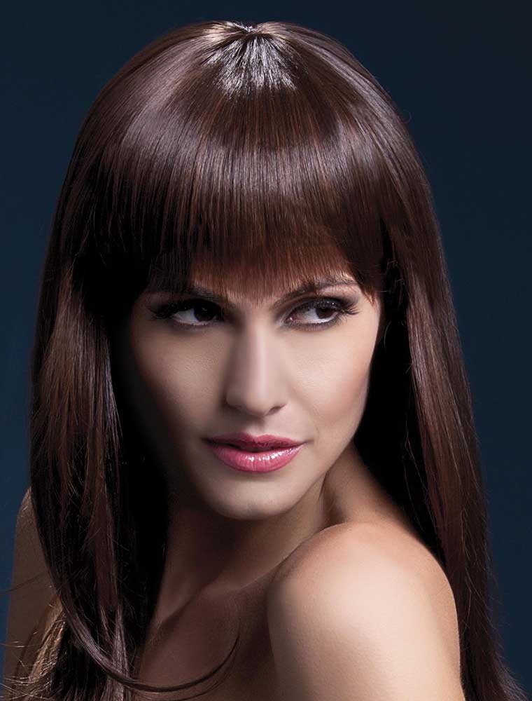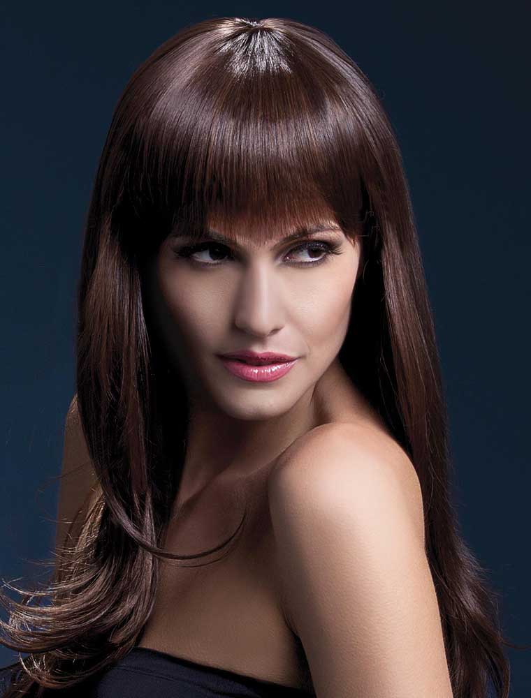 Peruca model Sienna din gama de lux “Fever”, varianta maro, cu par lung si breton. Este confectionata din par sintetic identic cu cel natural cu aspect 100% normal si cu un excelent raport pret/calitate, vedeti mai jos detalii.